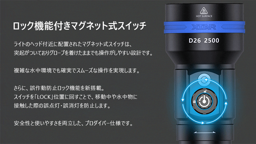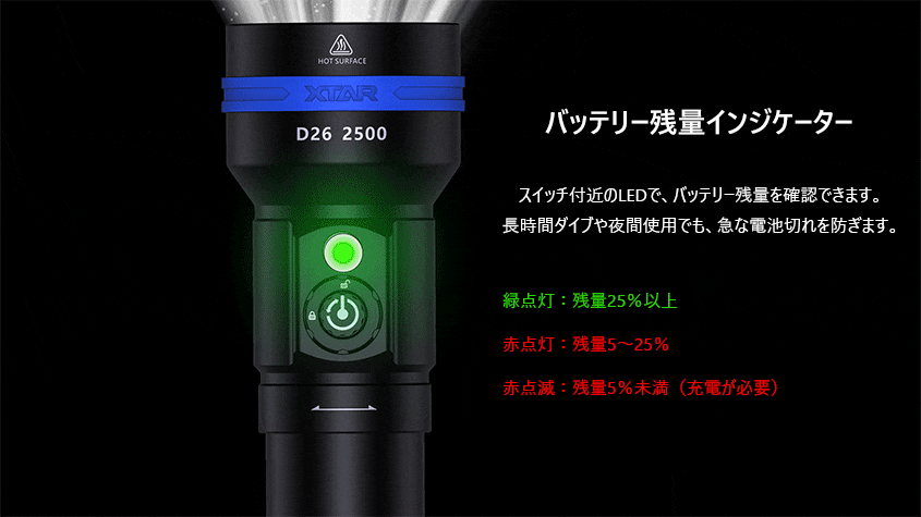 XTAR (エクスター) ダイビングライト D26 2500 ロング 2500ルーメン 完全防水 水中灯 フルセット